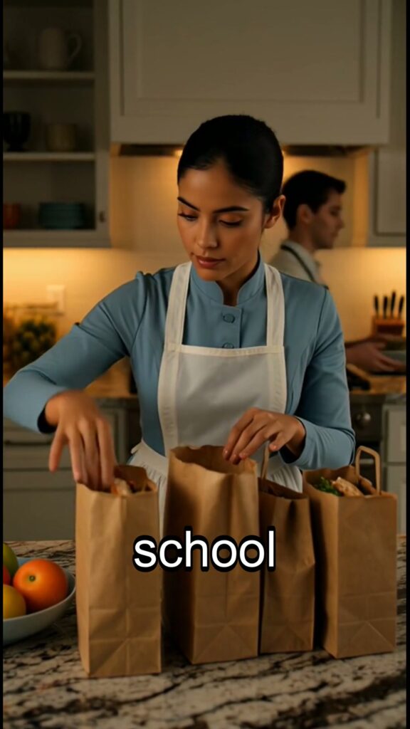 On a crisp October morning in 2022, Michael’s late-night work session led him to casually check the kitchen camera around 4:17 AM. What he witnessed would change everything. Instead of preparing the usual two school lunches for his children, Elena was methodically assembling five carefully packed meals.